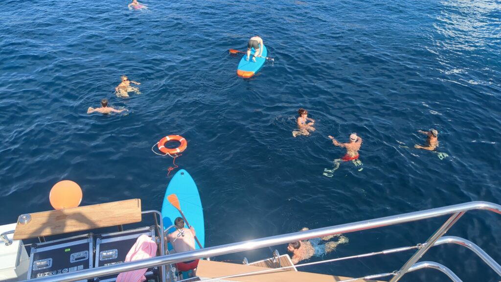 Tout au long de la journée et dès que le bateau est au mouillage, vous aurez accès à des paddles, équipements de snorkeling et autres festivités afin de profiter autrement de cette journée.