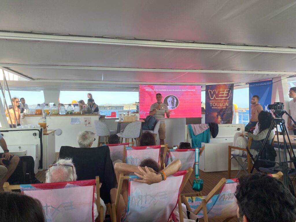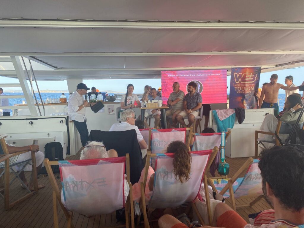 - 16h30 : Arrivée à Porquerolle, baignade, paddle et atelier crypto par Wallcrypt avec Jean Luc Lasquellec