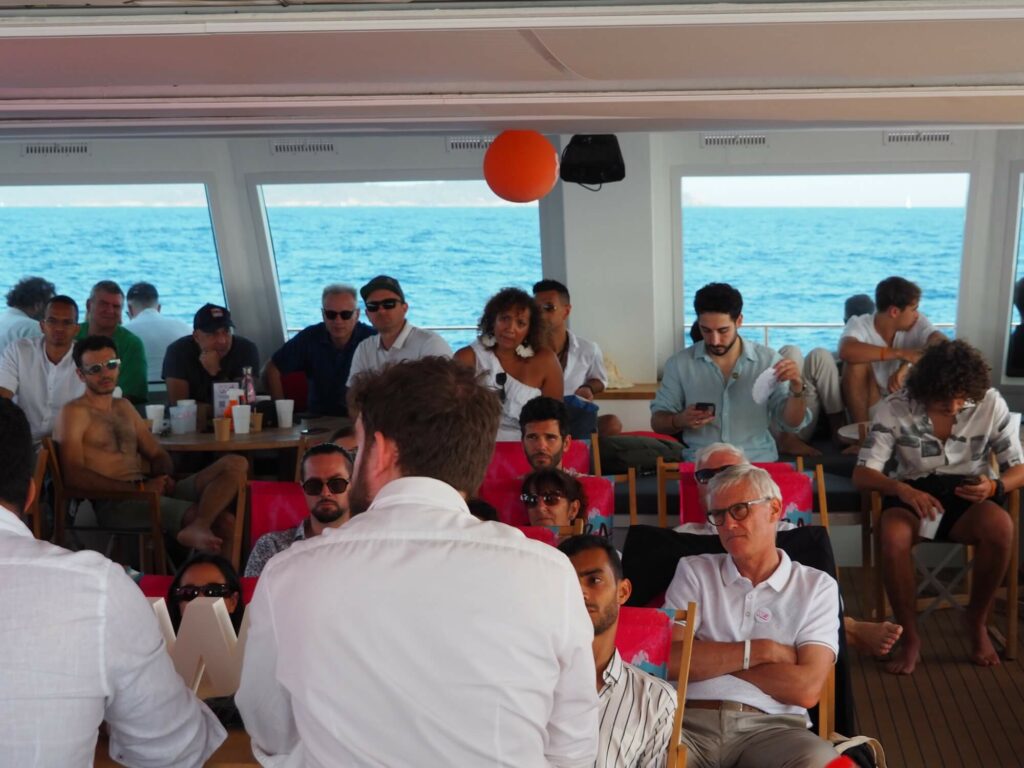 à bord d’un catamaran de 200 personnes au départ de Toulon.